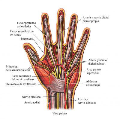Anatomía de la mano. Cada manoposee 27 huesos, 8 en el carpo, 5 metacarpianos y un total de 14 falanges. ... A excepción del hueso piramidal, pisiforme, y del ganchoso, la mayor parte de los huesos del carpo presentan forma cuboides y constan de seis caras